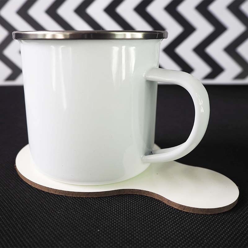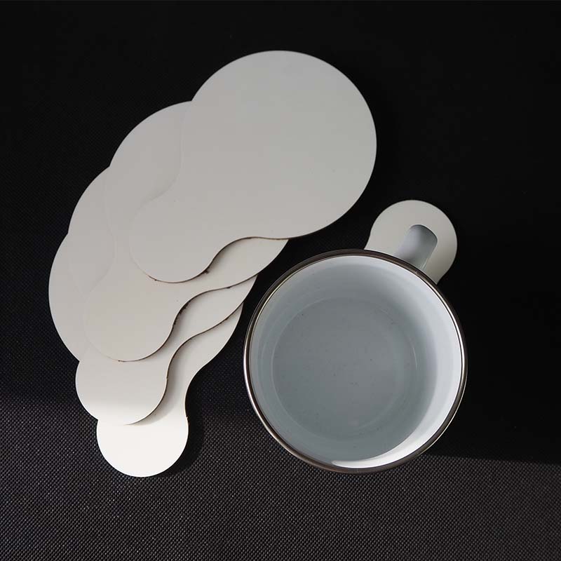 • Podkładka pod kubki MDF jest wykonana z cienkiej płyty pilśniowej, pokrytej białą warswtą z poliestrem - obecność poliestru umożliwia znakowanie metodą sublimacji