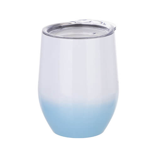Mały, biało - niebieski, cieniowany termokubek z efektem ombre