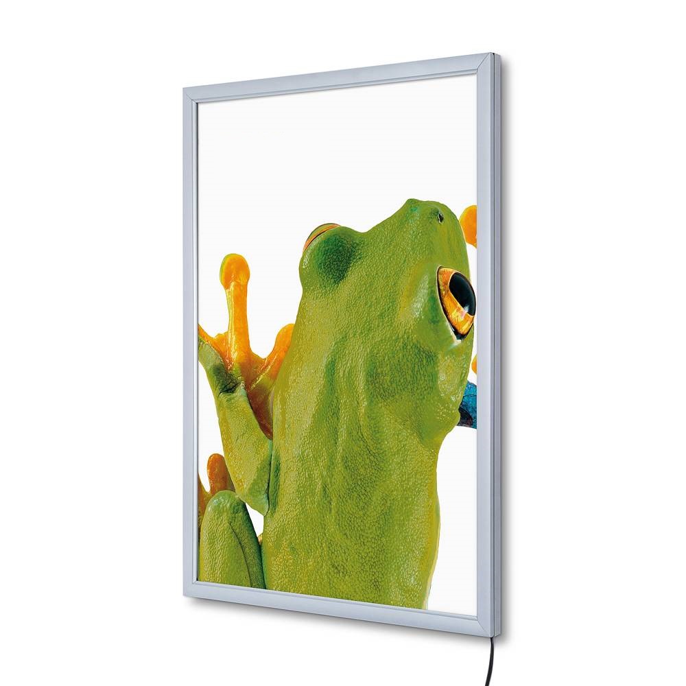 Podświetlana rama zatrzaskowa na plakaty to najlepsze narzędzie do prezentacji reklam w pomieszczeniach. Łatwe otwieranie listew plakatowych zapewnia wygodę nawet przy częstej wymianie plansz. Ramki na plakaty z oświetleniem są energooszczędne dzięki zastosowaniu technologii LED. Diody w osłonie cechują się długą żywotnością i emitują minimalną ilość ciepła. Oświetlenie LED przyciąga uwagę odbiorców i nadaje ramie nowoczesnego charakteru. Ramy plakatowe z podświetleniem LED doskonale eksponują treści. Przeznaczone są do użytku wewnątrz pomieszczeń.