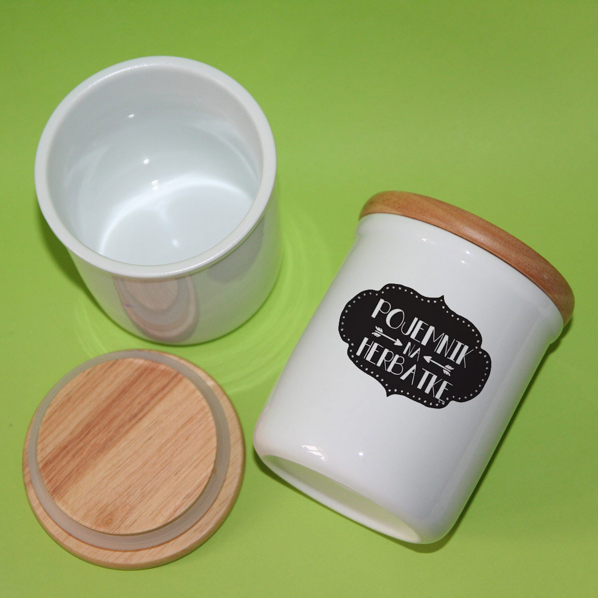 Pojemnik ceramiczny z drewnianą pokrywką do sublimacji