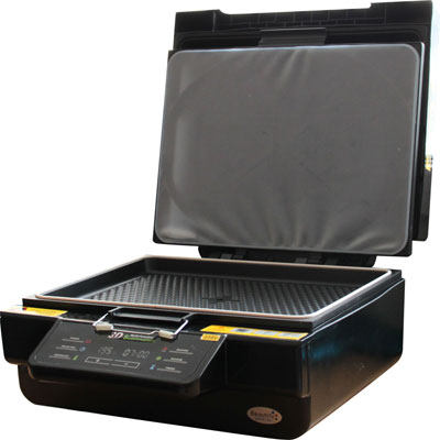 • Przygotowany wydruk sublimacyjny jest przytrzymywany przy powierzchni produktu, a następnie dociskany próżniowo