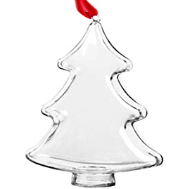 Przezroczysta bombka choinka z czerwoną tasiemką do samodzielnego montażu. Aby wypełnić bombkę zdjęciem pobierz szablon drzewko do wyciecia. Wymiary: 120mm x 110mm