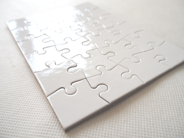 • Puzzle do nadruku są wykonane z tektury, powleczonej warstwą z poliestrem - obecność cząsteczek poliestru umożliwia znakowanie metodą sublimacji