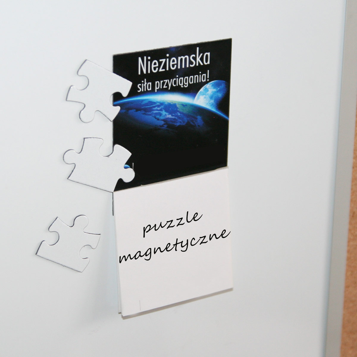 • Puzzle do nadruku są wykonane z wytrzymałej folii magnetycznej, powleczonej warstwą błyszczącego, białego lakieru z poliestrem - obecność cząsteczek poliestru umożliwia znakowanie metodą sublimacji