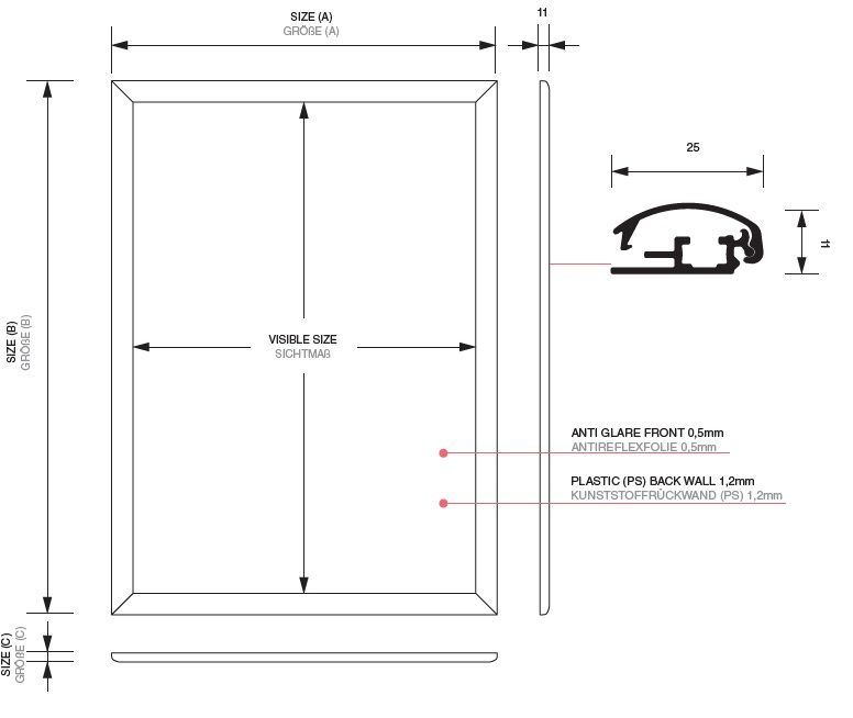 • Ramy na reklamy przeznaczone do montażu na ścianie za pomocą śrub i haczyków (komplet nie zawiera elementów montażowych)