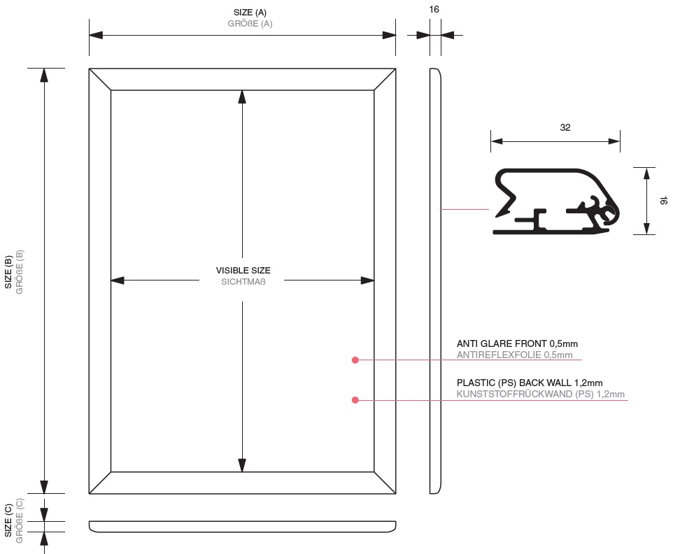 • Ramy na reklamy przeznaczone do montażu na ścianie za pomocą śrub i haczyków (komplet nie zawiera elementów montażowych)