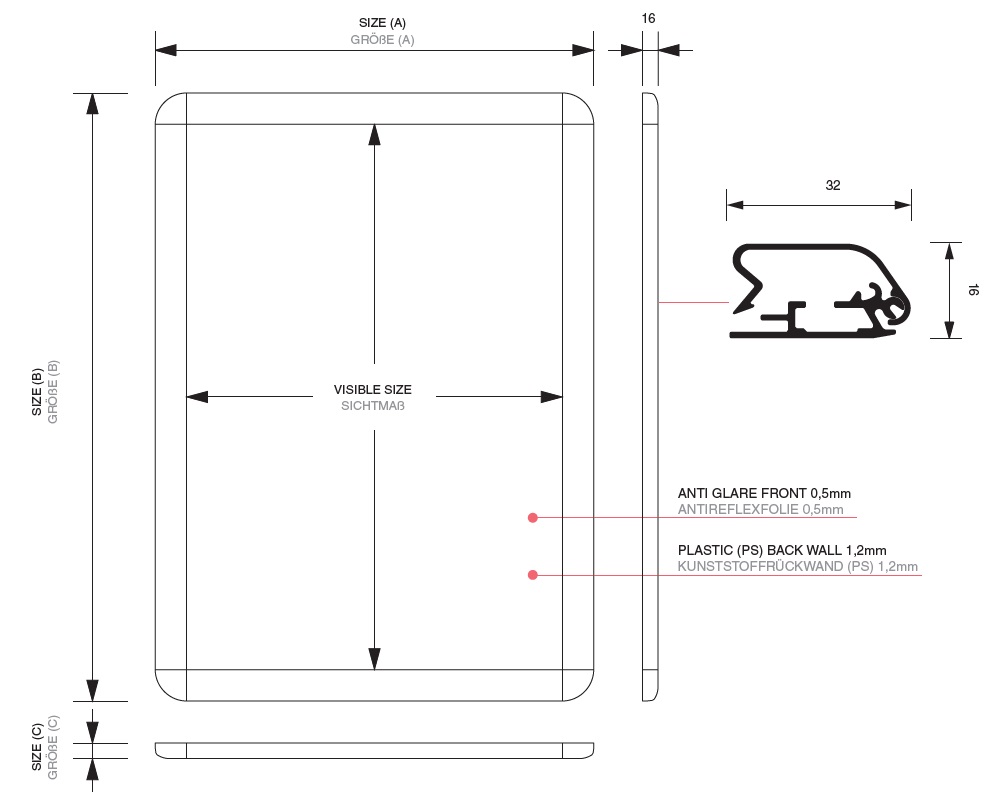 • Ramy na reklamy przeznaczone do montażu na ścianie za pomocą śrub i haczyków (komplet nie zawiera elementów montażowych)
