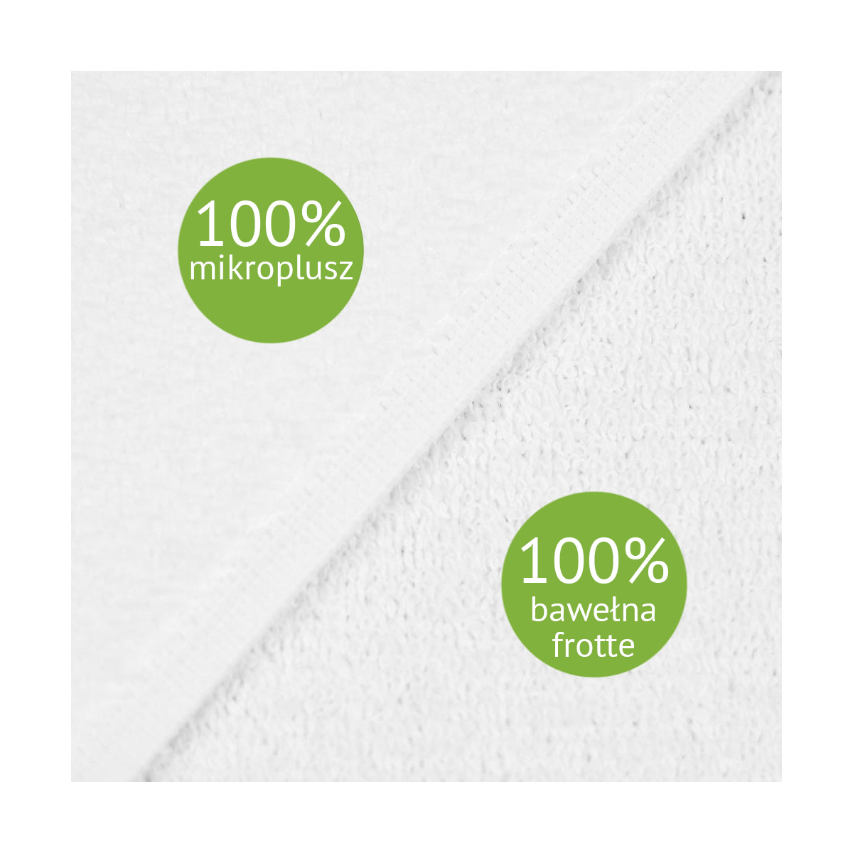 • Prostokątny ręcznik do nadruku metodą sublimacji jest wykonany z wewnętrznej strony z 100% bawełny - frotte, natomiast z zewnętrznej - 100% mikropluszu