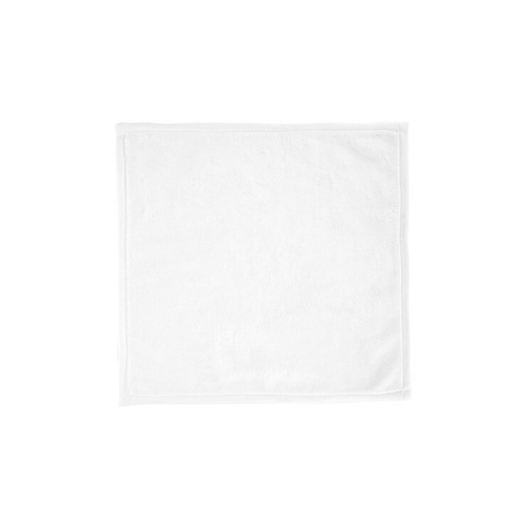 • Kwadratowy ręcznik do nadruku metodą sublimacji jest wykonany z materiału frotte i poliestru.