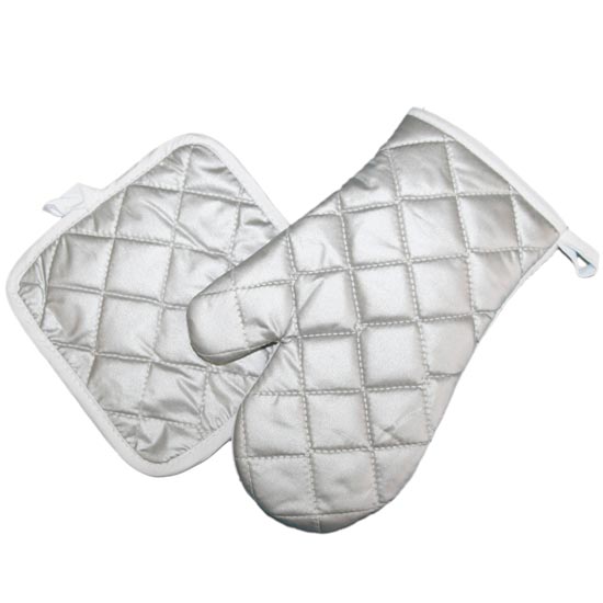 • Rękawiczka oraz łapka kuchenna są wykonane z poliestru; do znakowania jest przeznaczona ich biała strona, natomiast srebrna pikowana izoluje ciepło