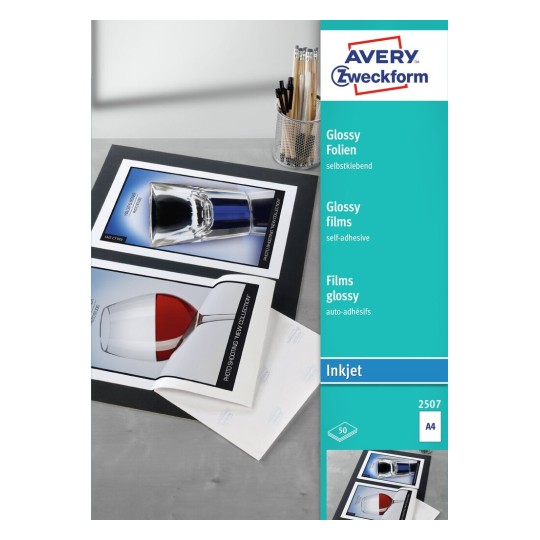 • Samoprzylepna folia poliestrowa z wysokim połyskiem jest dedykowana do zadruku w drukarkach atramentowych