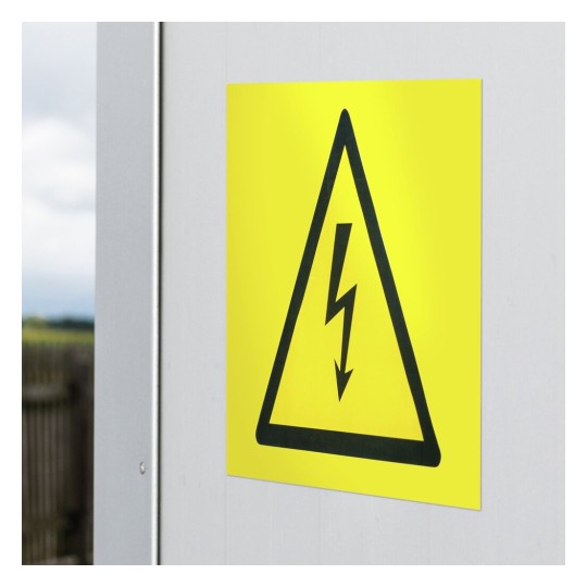 • Żółte naklejki są wytrzymałe i wodoodporne, a także odporne na działanie smarów, brudu i temperatury od -20°C do +80°C