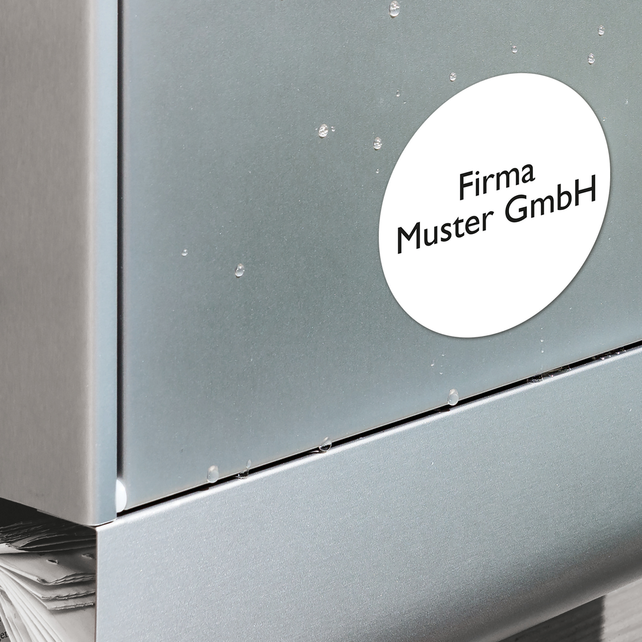 Trwałe etykiety Heavy Duty są sprzedawane w opakowaniach po 20 arkuszy w formacie A4 (21 x 29,7 cm). Okrągłe, białe naklejki z poliestru, mają wymiar: fi 30 mm