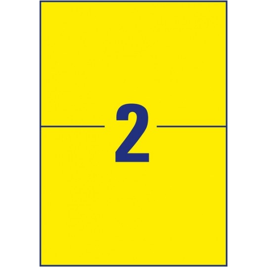 Trwałe, żółte etykiety Heavy Duty są sprzedawane w opakowaniach po 20 arkuszy w formacie A4 (21 x 29,7 cm). Każdy arkusz to 2 żółte naklejki z poliestru, wymiary etykiety: 210 x 148 mm