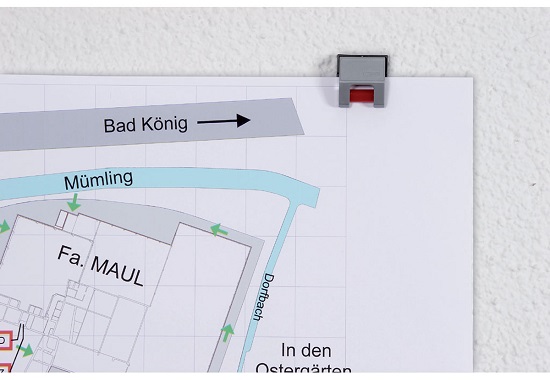 Uchwyt zaciskowy służy do przytrzymywania nawet grubszych arkuszy i plików dokumentów. Magnetyczny uchwyt do papieru trzyma rysunki, notatki, zdjęcia i plakaty w zasięgu wzroku.