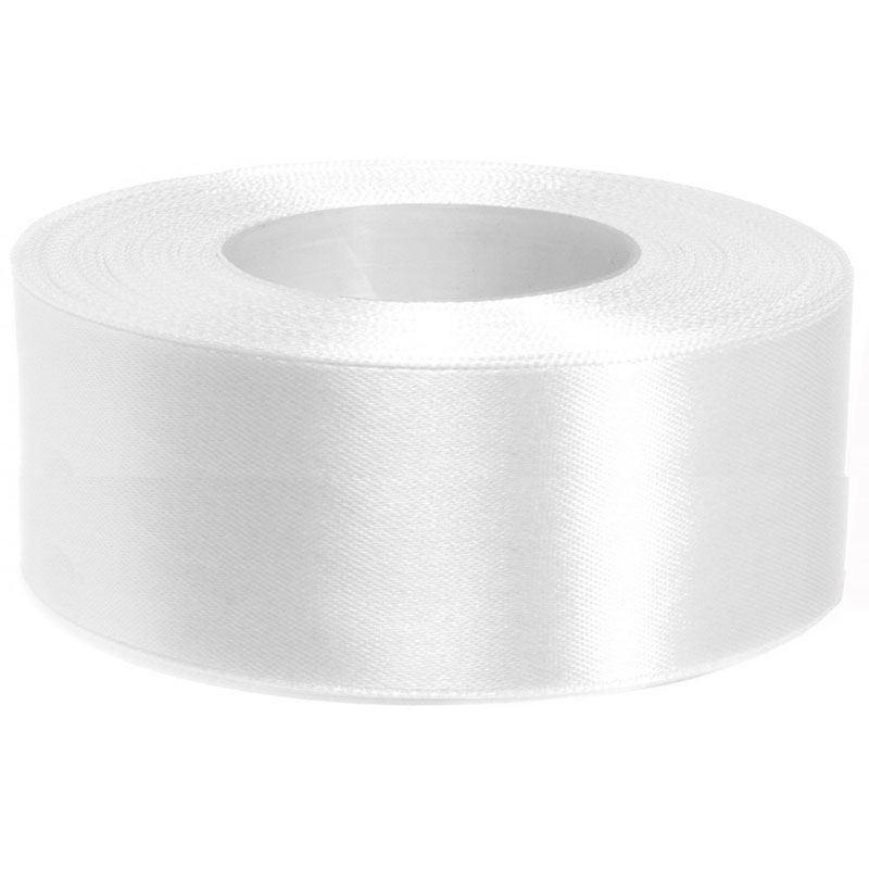 Satynowa wstążka w kolorze białym do nadruku w drukarce termotransferowej TSC TE200. Biała taśma satynowa o szerokości 8 centymetrów jest nawinięta na rolkę o długości 50 metrów.