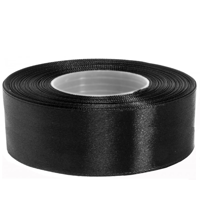 Satynowa wstążka w kolorze czarnym do nadruku w drukarce termotransferowej TSC TE200. Czarna taśma satynowa o szerokości 5 centymetrów jest nawinięta na rolkę o długości 50 metrów.