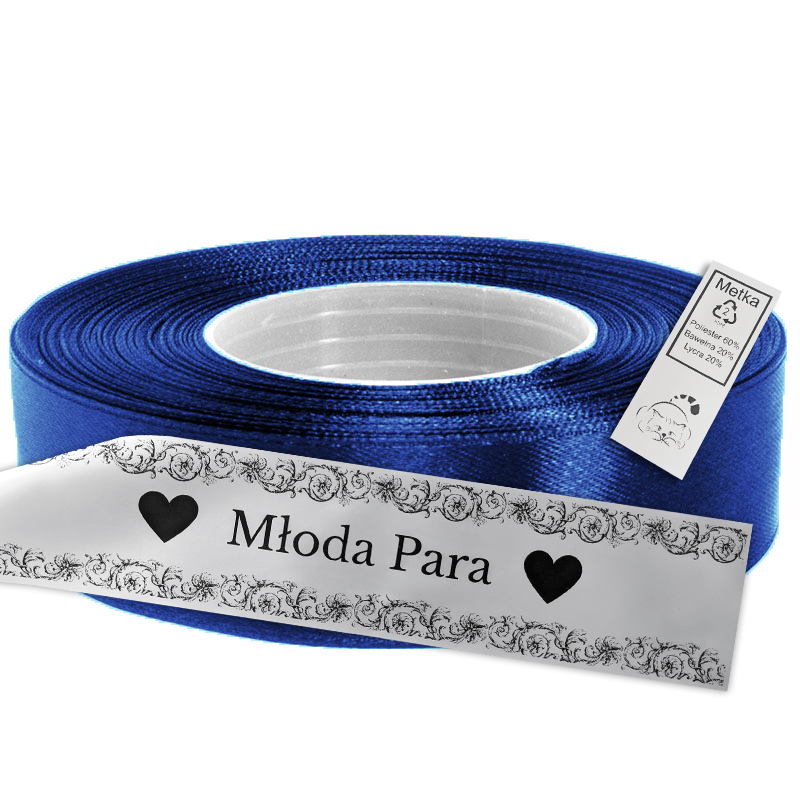 Satynowa wstążka w kolorze niebieskim do nadruku w drukarce termotransferowej TSC TE200. Niebieska taśma satynowa o szerokości 2,5 centymetra jest nawinięta na rolkę o długości 50 metrów. Średnica tulei: 40 mm.