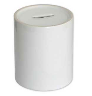 • Biała, okrągła skarbonka do sublimacji o średnicy 8,2 cm i wysokości 9 cm