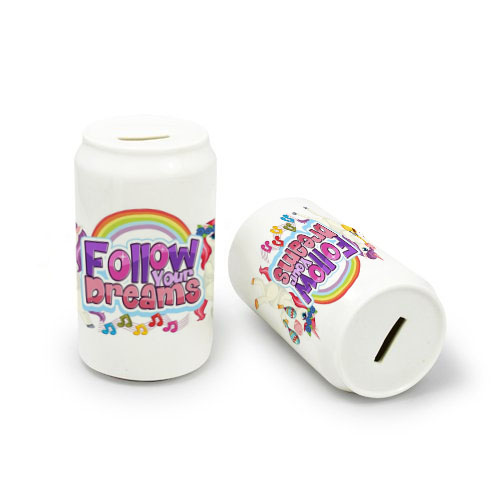 • Puszka z otworem na monety z własnym nadrukiem to doskonały pomysł na prezent dla dziecka, które zbiera kieszonkowe na realizację swoich marzeń, jak również śmieszny upominek dla dorosłych, odkładających na własne cele ("na podróż", "na paliwo", "na nowe auto" itp.)