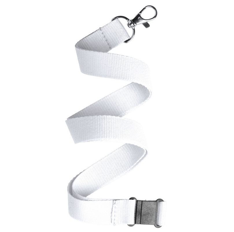 Biała smycz reklamowa z karabińczykiem i bezpiecznym zapięciem - do nadruku