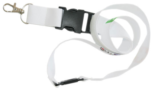 • Biała smycz na klucze odznacza się optymalną długością, dopasowaną do wygodnego noszenia