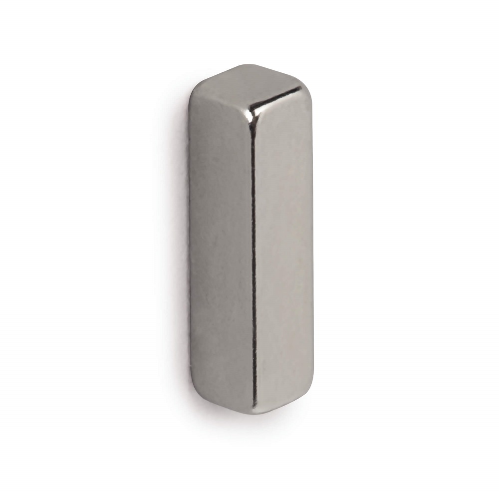 • Prostopadłościenny magnes neodymowy srebrny o wymiarach 15 x 4 x 4 mm