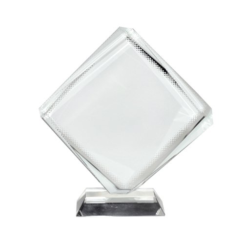 Kwadratowy kryształ do sublimacji z podstawką (statuetka) ma wymiary: 12,5 cm x 12,5 cm x 1,5 cm.