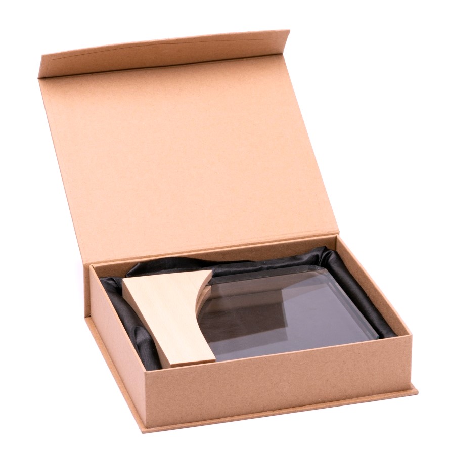 Statuetka szklana z drewnianą podstawką do graweru - prostokąt ze ściętymi rogami