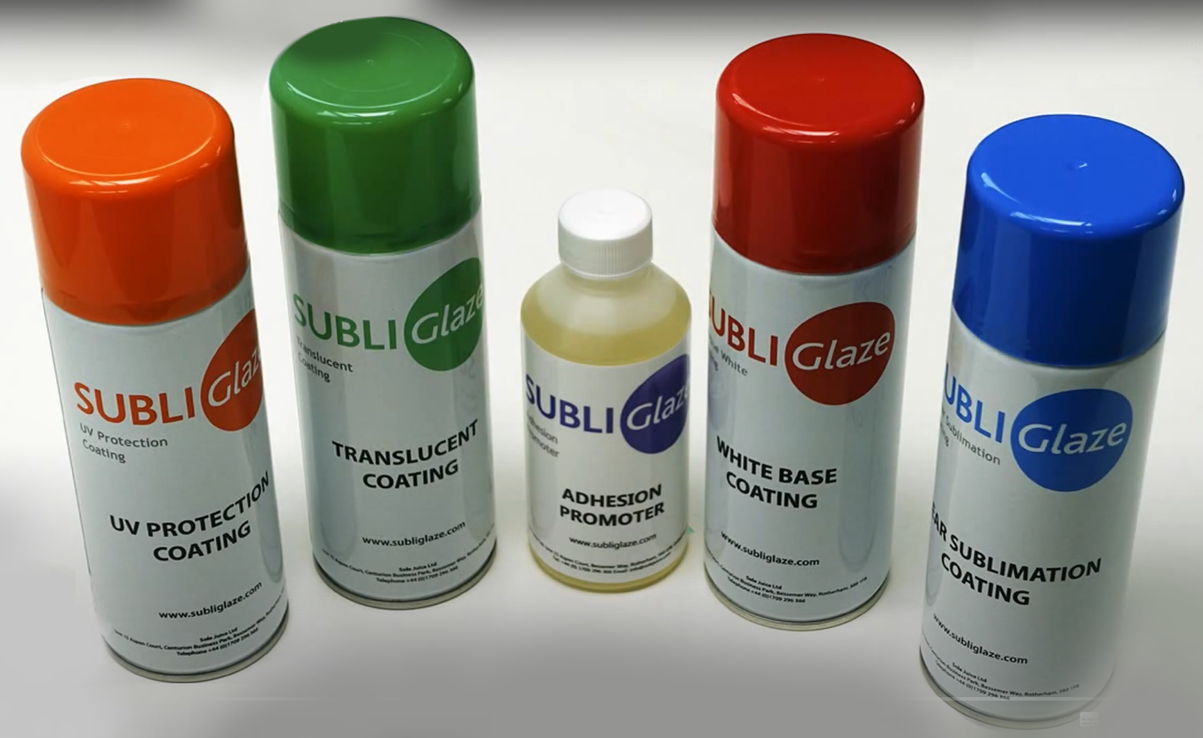 • Subli Glaze Adhesion Promoter jest stosowany w połączeniu z powłoką Subli Glaze Clear, aby zapewnić lepszą przyczepność i zwiększyć odporność na ścieranie gładkich podłoży, trudnych do powlekania