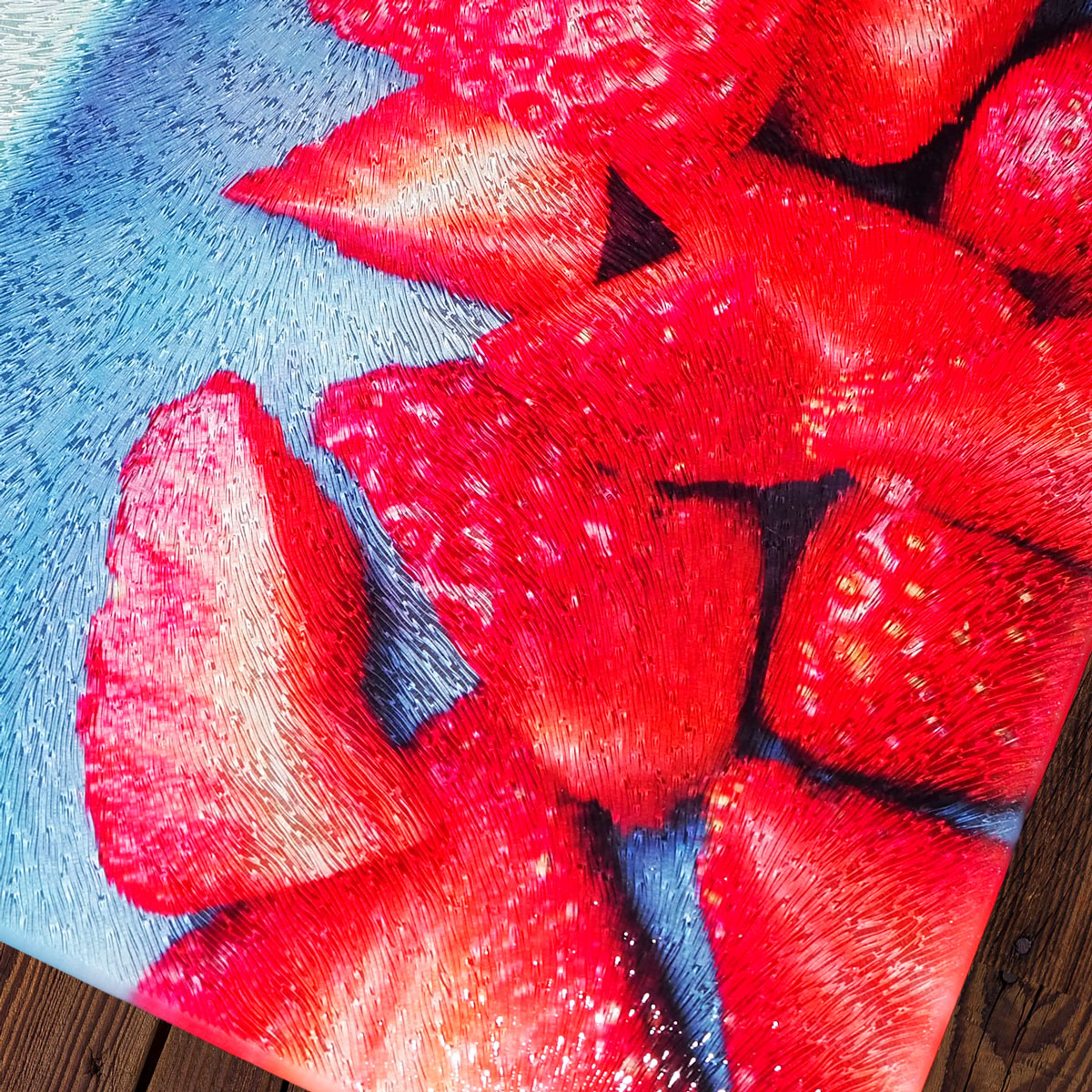 • Szklana powierzchnia deski do serwowania np. wędlin lub serów zapewnia estetyczny wygląd naniesionego wzoru (zdjęcie, grafika, tekst, logo)