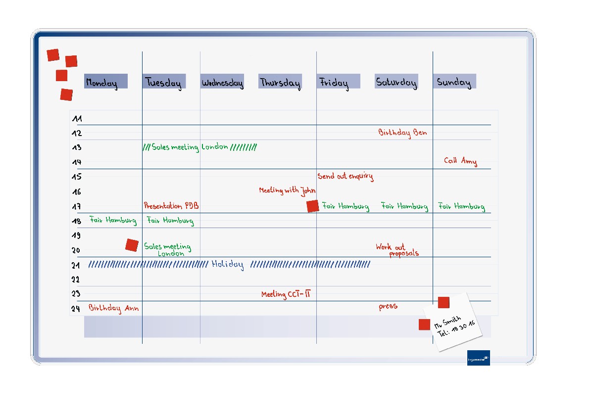 • Powierzchnia tablicy do zaplanowania tygodnia jest wykonana z wytrzymałej lakierowanej blachy odpornej na zarysowania
