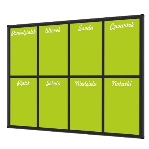 Tablica suchościeralna magnetyczna do planowania tygodnia zielona