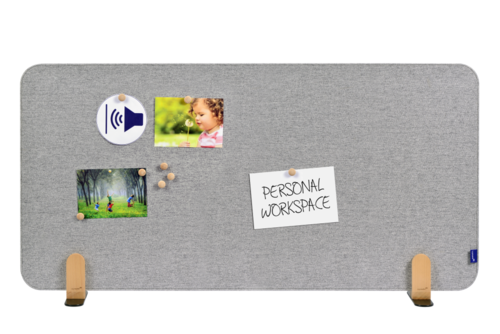 Tablica tekstylna bez ramy ELEMENTS o wymiarach 600 x 1200 x 21mm, na nóżkach metalowo - drewnianych