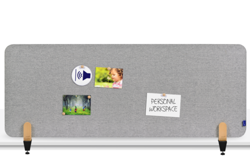 • Przegroda na biurko zapewnia bezpieczne i higieniczne środowisko pracy, dodatkowo jest dźwiękochłonna, poprawia akustykę przy biurku (klasa pochłaniania dźwięku C)