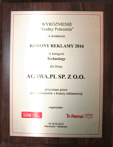 Uhonorowaniem naszej pracy było przyznane nam po raz kolejny wyróżnienie w konkursie Korony Reklamy w kategorii "Technology". Serdecznie dziękujemy tym, którzy oddali swój głos!