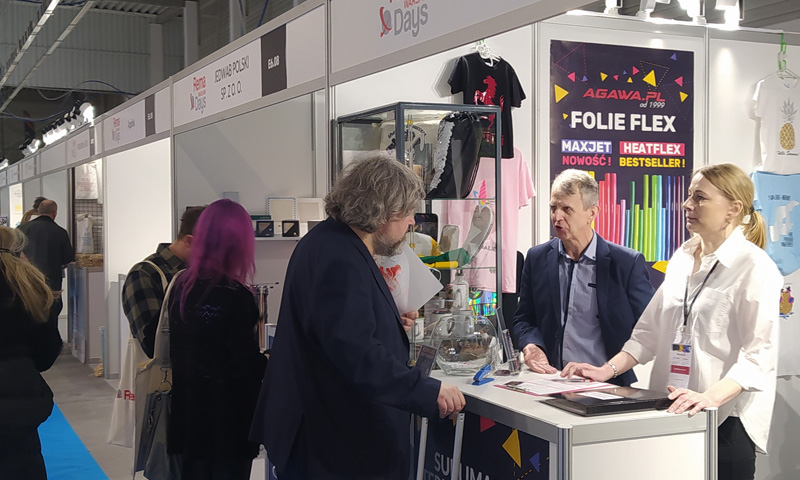 Tym razem zaprezentowaliśmy nie tylko nasze bestsellerowe »folie Heatflex do nadruków na odzieży, ale również naszą nową folię »flex MAXJET, która spotkała się z dużym zainteresowaniem ze strony naszych klientów. Poza szeroką ofertą »folii flex i flock przedstawiliśmy całkiem nową część naszej oferty, tj. »nadruki w technologii DTF oraz »powłoki sublimacyjne Subli Glaze, co wywołało niemałą sensację wśród odwiedzających.