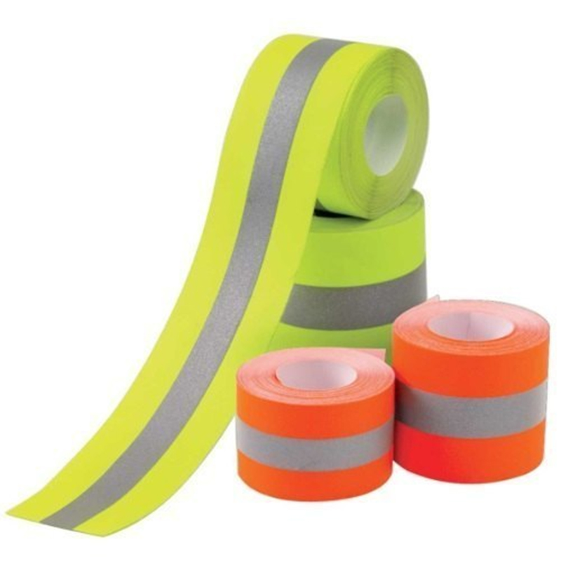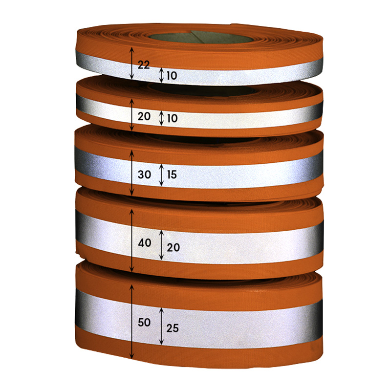 Fluorescencyjna taśma odblaskowa składa się z materiałowego fluorescencyjnego paska w kolorze żółtym lub pomarańczowym oraz srebrnej taśmy odblaskowej wkomponowanej po środku. Produkt jest przeznaczony do wszywania na różnego rodzaju materiały. Dzięki doskonałym właściwościom odblaskowym i jaskrawemu, fluorescencyjnemu wykończeniu, taśma zapewnia maksymalną widoczność w każdych warunkach oświetleniowych.