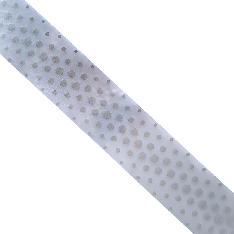 Błyszcząca taśma retrorefleksyjna - kółka najczęściej używana w ubraniach sportowych i elastycznych. Srebrna taśma do termotransferu może także znaleźć zastosowanie w produkcji ubrań dla ratowników, rowerzystów, sportowców oraz plecaków szkolnych i dzieży dziecięcej. Poliestrowa taśma odblaskowa w kolorze srebrnym doskonale odbija światło. Termowgrzewalna taśma oznaczeniowa może być bardzo łatwo wgrzana w ubranie za pomocą prasy lub żelazka. Taśma do wprasowania znajduje zastosowanie w różnej formie, można z niej wyciąć paski bezpieczeństwa czy wykonać opaski odblaskowe.