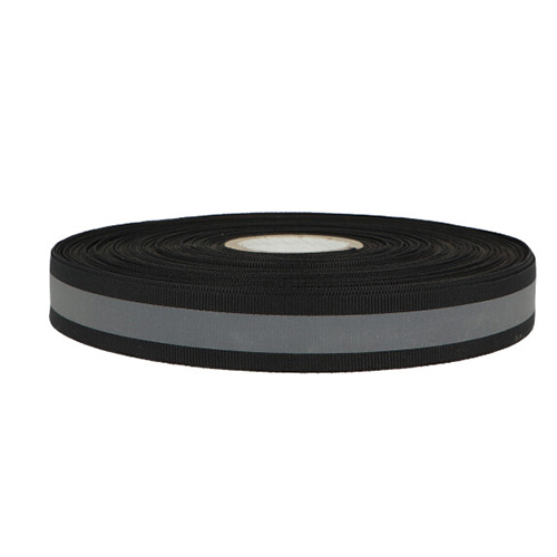 Rypsowa taśma odblaskowa w kolorze czarnym ze srebrnym paskiem odblaskowym