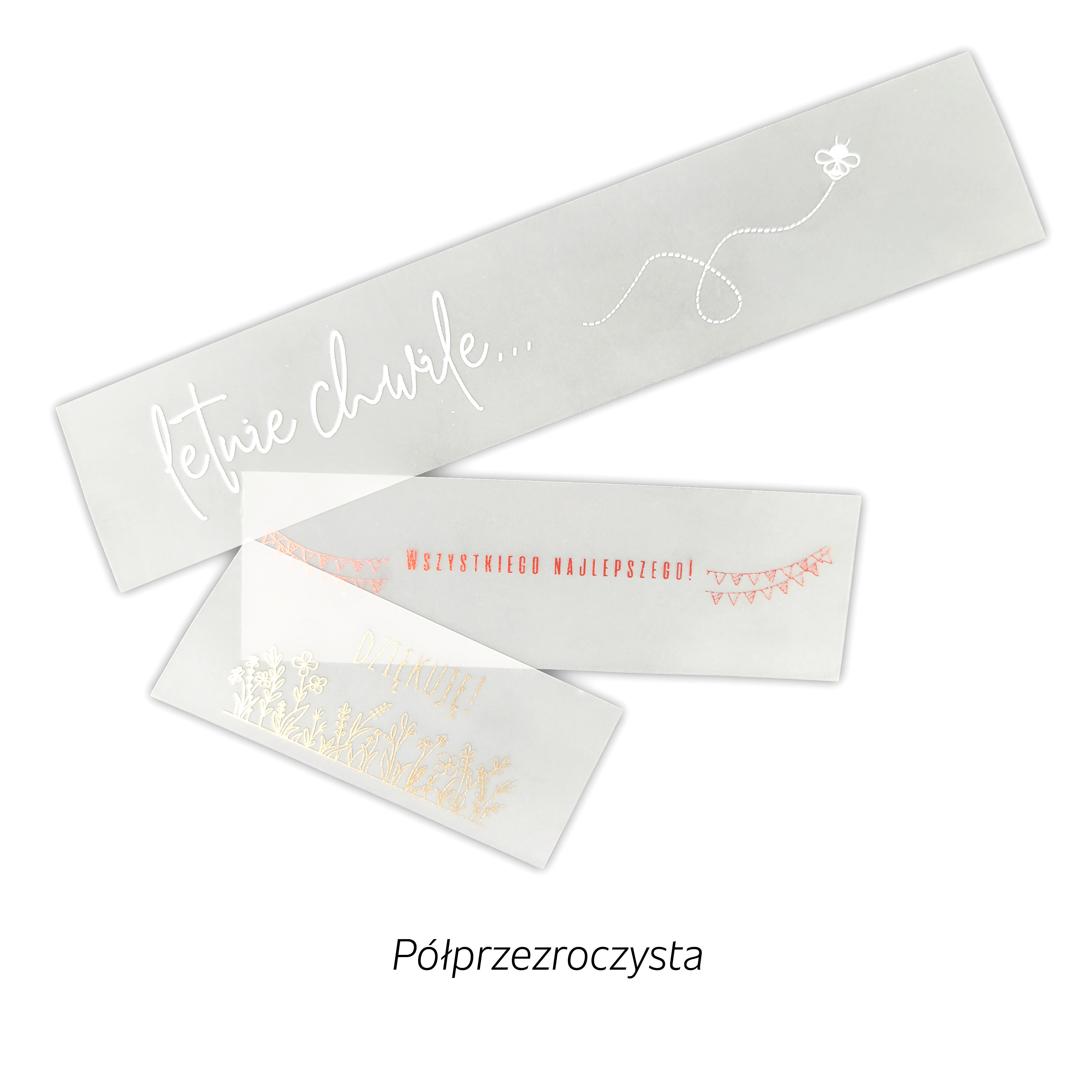 Półtransparentna taśma z silikonu przeznaczona jest do dwustronnego zadruku w technologii termotransferu.