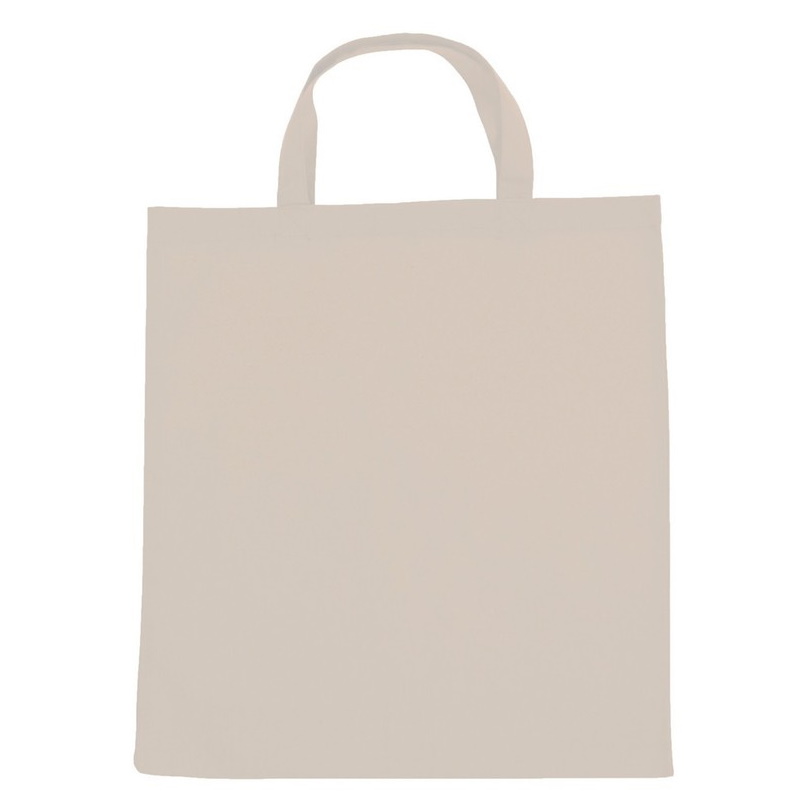 • Beżowa torba na zakupy do nadruku z krótkimi uchami, o wymiarach 370 x 420 mm