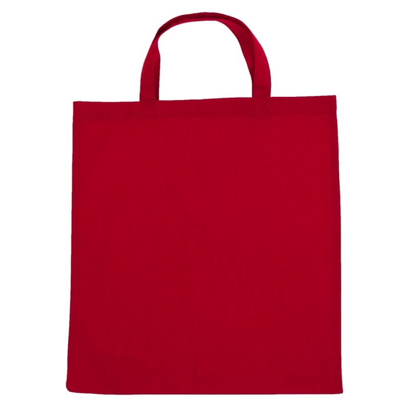 • Czerwona torba na zakupy do nadruku z krótkimi uchami, o wymiarach 370 x 420 mm