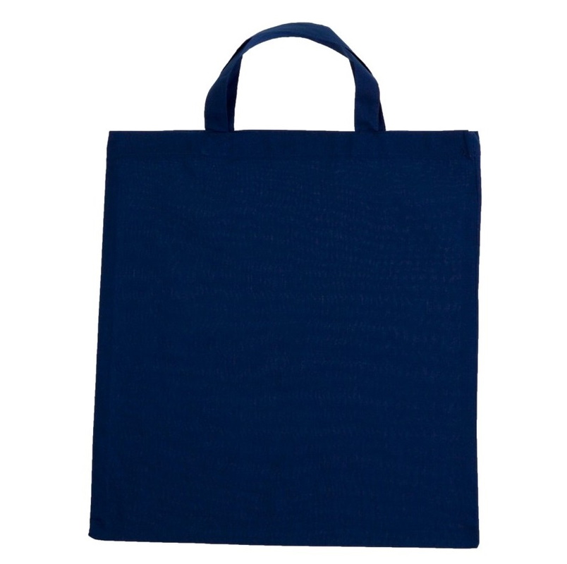 • Granatowa torba na zakupy do nadruku z krótkimi uchami, o wymiarach 370 x 420 mm