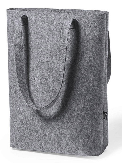 • Torba zakupowa z wygodnymi uszami jest wykonana z ciemno szarego filcu (RPET)