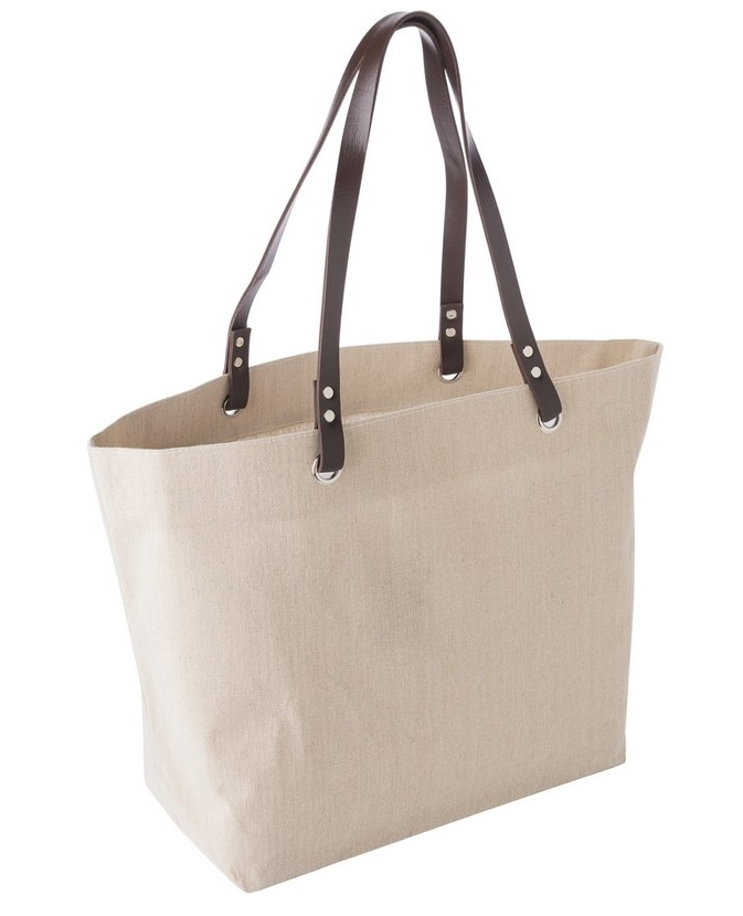 • Torba zakupowa z wygodnymi uszami jest wykonana z lnu, uszy z PE