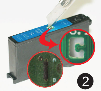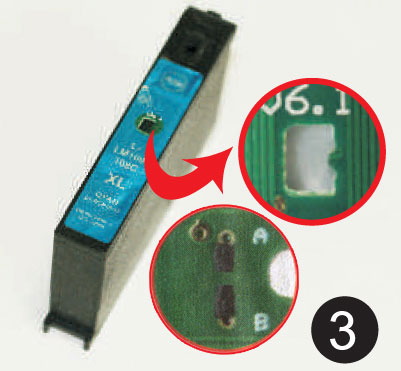 2. Odciąć wystający fragment chipa na przedniej obudowie kartridża (jak na rysunku).
