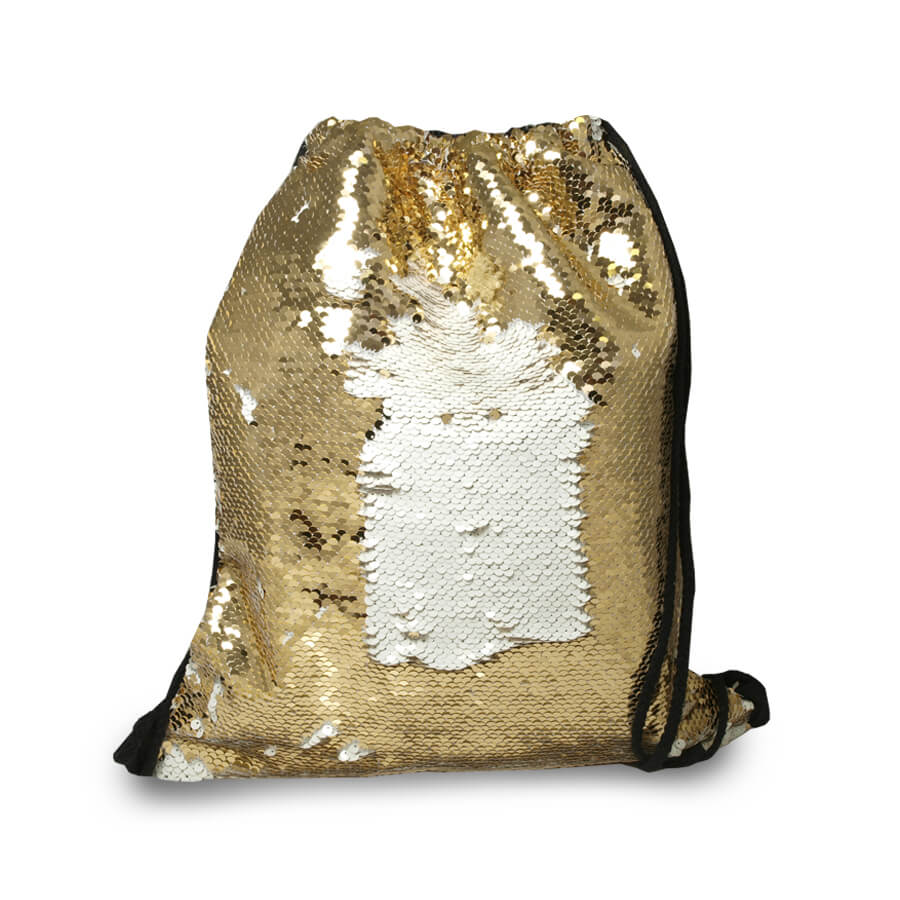 Worek do sublimacji w kolorze złotym z jednej strony pokryty cekinami