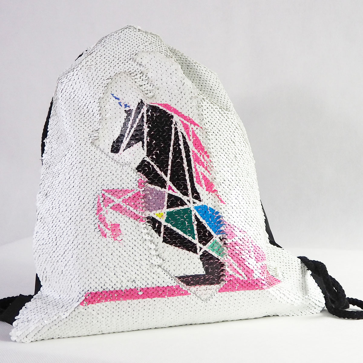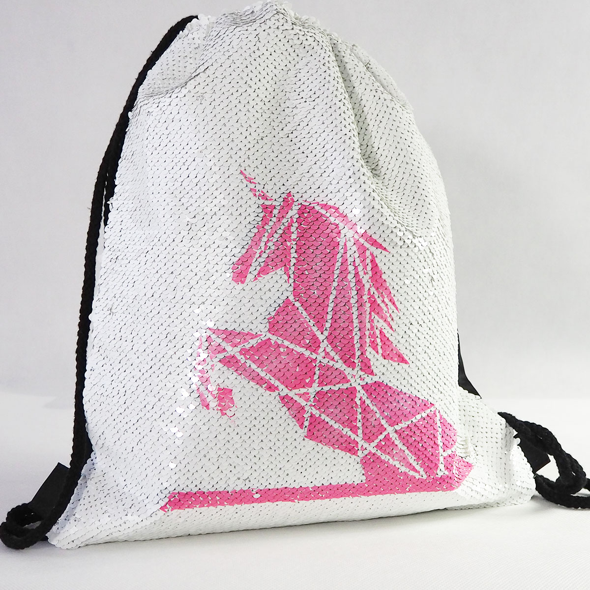 • Magiczny worek sznurkowy z cekinami świetnie sprawdzi się w roli plecaka dla małych i dużych wielbicieli błyskotek