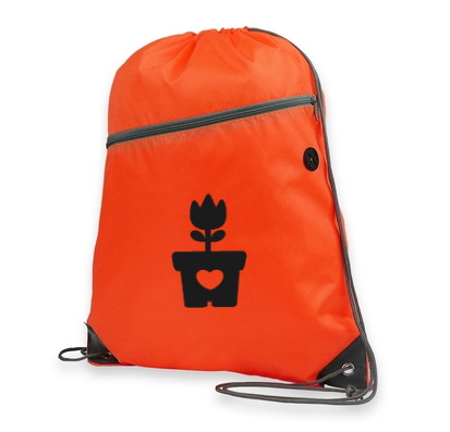 Pomarańczowy worek z szarym sznurkiem
